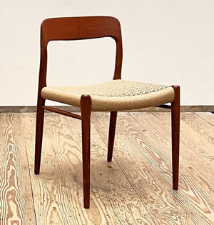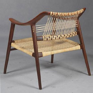 Bilder oben: Papier-Flechtwerk an dänischen, klassischen Stühlen
