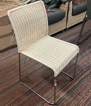 Oben: Aufwendige und spezielle Flechtwerke an klassischen Stühlen