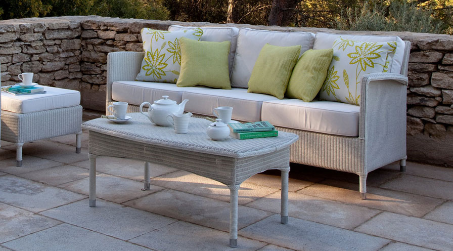 Die Untergestelle der Möbel sind aus Rattan oder Aluminium gefertigt. Für den Außenbereich sind ein Teil dieser Möbel geeignet