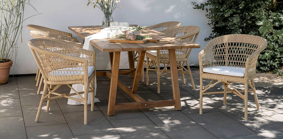 Wirklich wetterfeste Flechtmöbel die mit hochwertiger Kunststoff-Flechtfaser und einem Aluminium-Untergestell handwerklich gefertigt wurden.