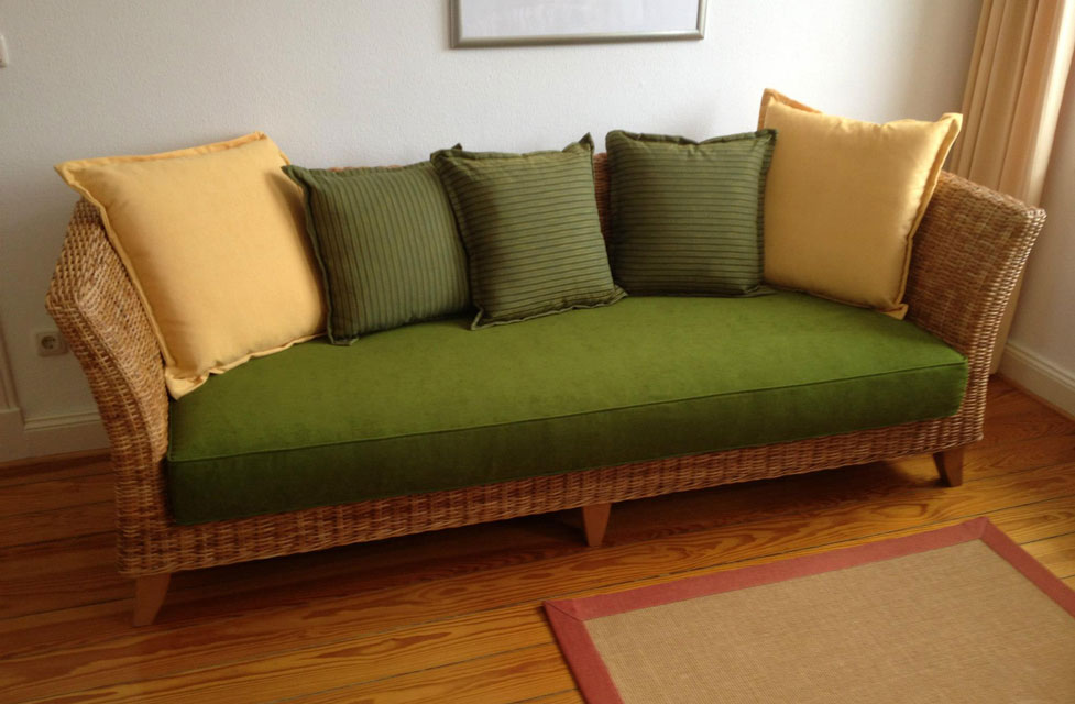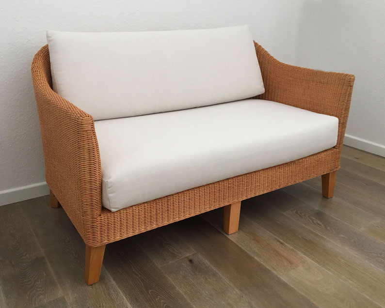 KS/14 2-sitzer Korbsofa Material Peddigrohr dunkel gebeizt Spitzenqualität Kissenauflagen mit Stoff nach Auswahl mit Reißerschluss Stoff abziehbar |