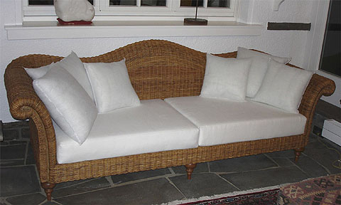 KS/1 Platzsparendes Korbsofa für etwa € 1.900.- inkl. Polster Breite 206 cm Tiefe nur 80 cm Sitzhöhe 46 cm Sitzhöhe passend auch zum Sitzen am Esstisch |